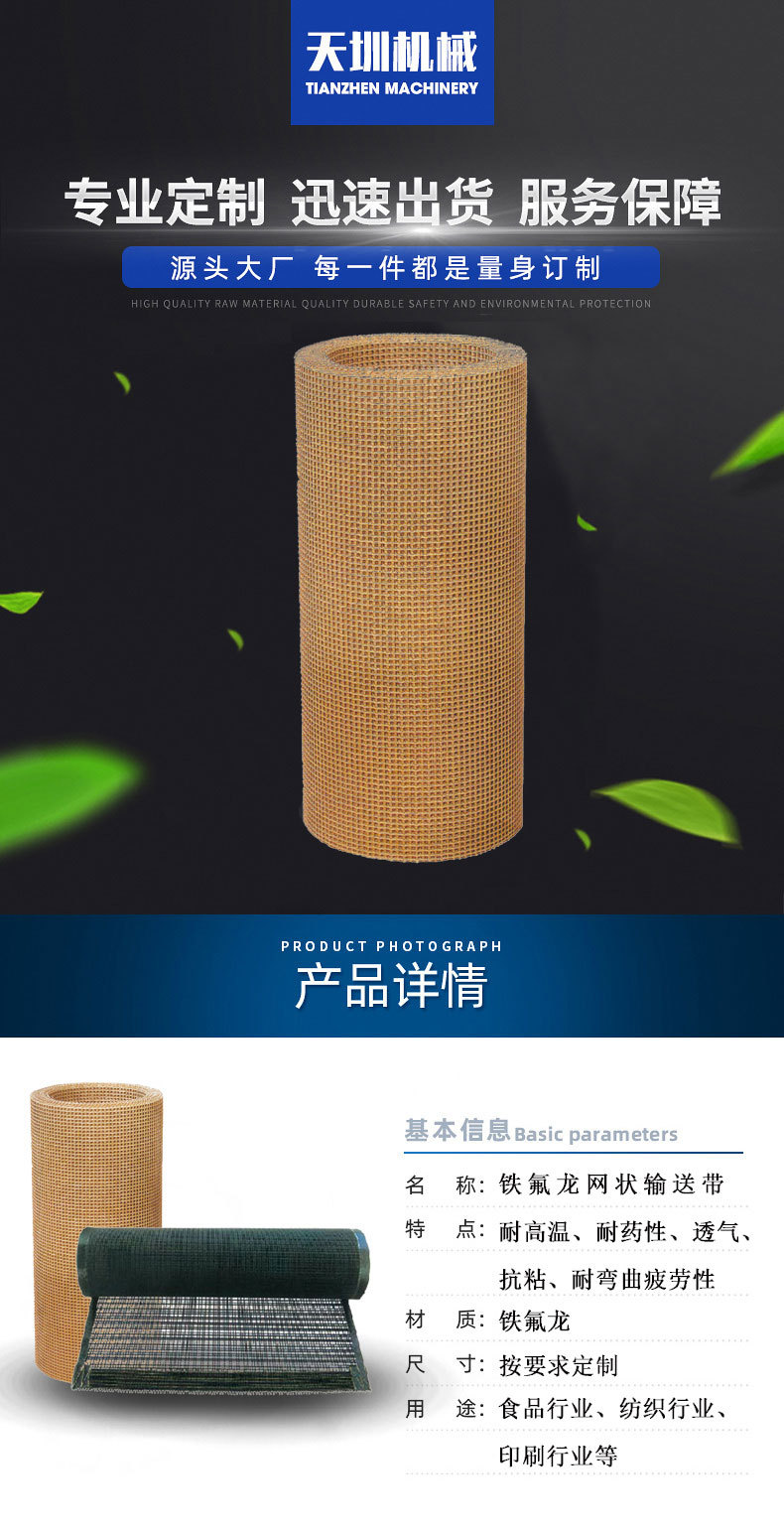 主营产品:输送带、特氟龙输送带、工业传输带、PU输送带、PVC输送带、工业皮带、PU开口带、接驳型同步带、橡胶输送带、不锈钢输送网带、平面高速传送带、橡胶同步带、塑料顶板链、工业毛毯输送带、电镀硅胶带、活络带、聚酯输送干网、TPU传送带、铁氟龙输送带等各类传输带。