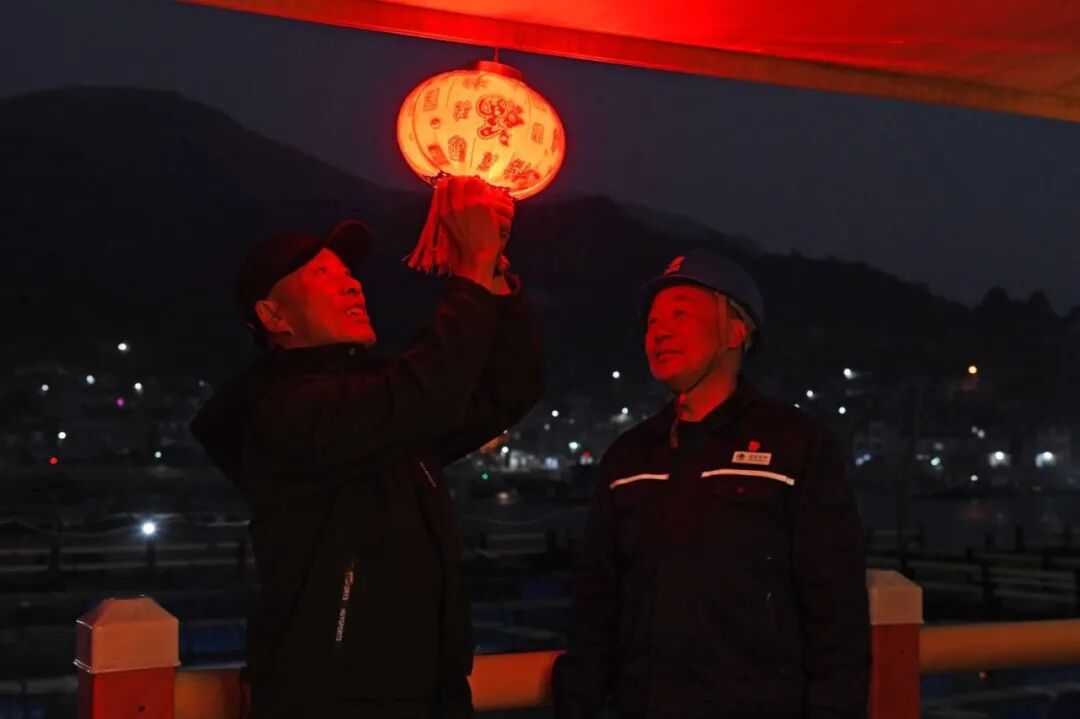 夜色降临,从渔排的养殖灯到民宿的景观灯,从窗内的团圆灯火到街边的吉庆灯笼,整座海岛浸润在温暖而明亮的光晕里。