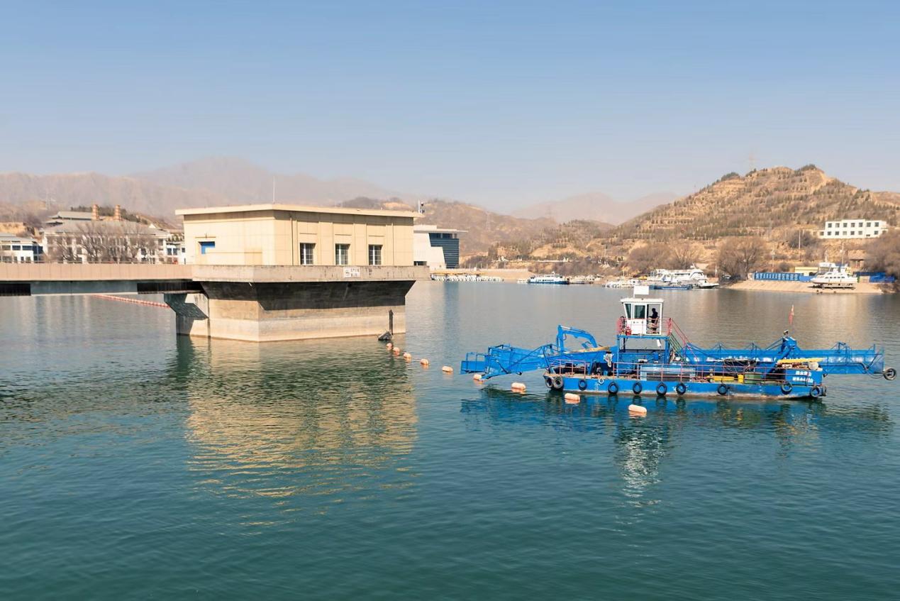 每年汛期,来自上游的各类漂浮物顺流而下,聚集在坝前区域,不仅影响景观与航运,也对水质及电站安全运行构成威胁。刘家峡水电厂严格落实“河湖长制”责任,强化日常巡河与管理。自2018年起,累计投入800余万元购置机械化打捞船,结合人工打捞,建立与地方政府的快速联动响应机制,实现打捞船24小时待命,年均清理漂浮物约1.5万立方米,确保坝前水域“日清日洁”,库区水面洁净如镜。