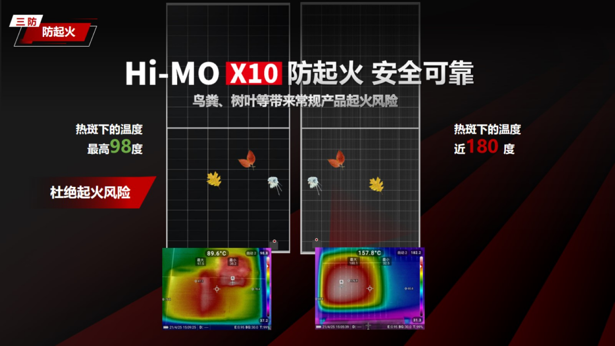 本次Hi-MO X10特种防火组件的核心突破,正是直击这一隐藏杀手,从根源掐灭这道安全隐患,为电站构建起两道不可逾越的安全防线。
