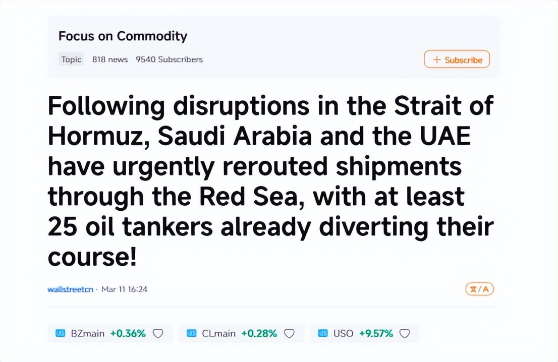 沙特阿美首席执行官Amin Nasser表示,通往延布的东西管道流量“数日内”将达到每日700万桶的满负荷上限,“一切都建立在油轮从东向西重新部署的基础上”。