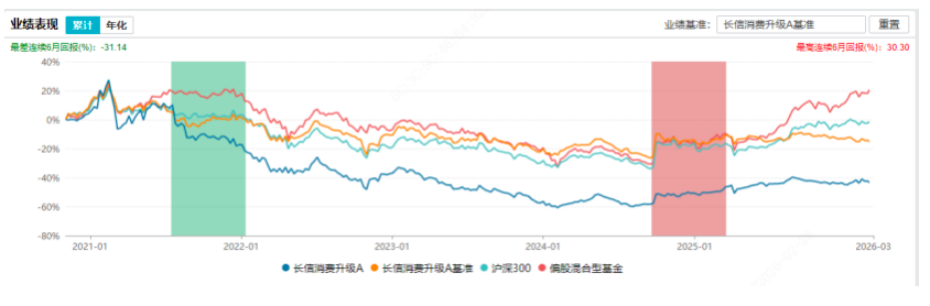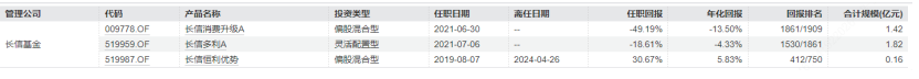 Wind数据显示,2022年至2024年,该基金连续三年亏损,亏损幅度分别为18.13%、24.17%、13.07%,且持续跑输业绩基准,规模也从初始的11.75亿元缩水至4.32亿元,净申购长期为负,投资者信心持续流失。与长信内需均衡A境遇相似,长信消费升级A(009778)成立以来累计亏损达43.38%,单位净值跌至0.5402元,仅在成立初期半年有过短暂盈利,此后长期处于亏损区间。