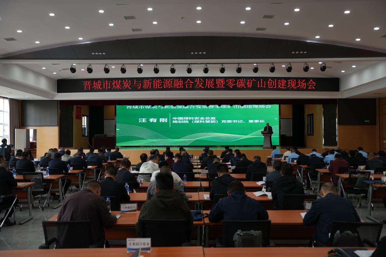 为深入贯彻国家“双碳”战略与能源安全新战略,全面落实山西省委、省政府绿色低碳发展部署,加快推动晋城市煤炭与新能源融合发展,4月15日,由晋城市能源局主办,煤炭工业规划设计研究院有限公司、中煤科工(雄安)智慧能源科技有限公司、山西天地王坡煤业有限公司联合承办的晋城市煤炭与新能源融合发展暨零碳矿山建设现场会,在山西天地王坡隆重召开。晋城市能源局及各县(区)能源部门负责人、晋控装备、兰花集团、阳泰集团、天泰集团等市内重点煤炭企业负责人、技术骨干,中国煤科规划院、煤科慧能及外部特邀专家共约150余人参会,共商煤炭行业“煤新融合”绿色低碳转型路径,共推零碳矿山建设落地见效。