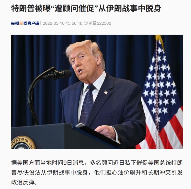 分析指出,特朗普对伊朗战事的表态前后矛盾。他上周称寻求伊朗“无条件投降”并且不排除派地面部队进入伊朗,9日又称,“远未到”下达这类命令的地步。特朗普9日在一场新闻发布会上说,美对伊军事行动会“很快”结束,但又补充说“可以更进一步,也必将更进一步”。