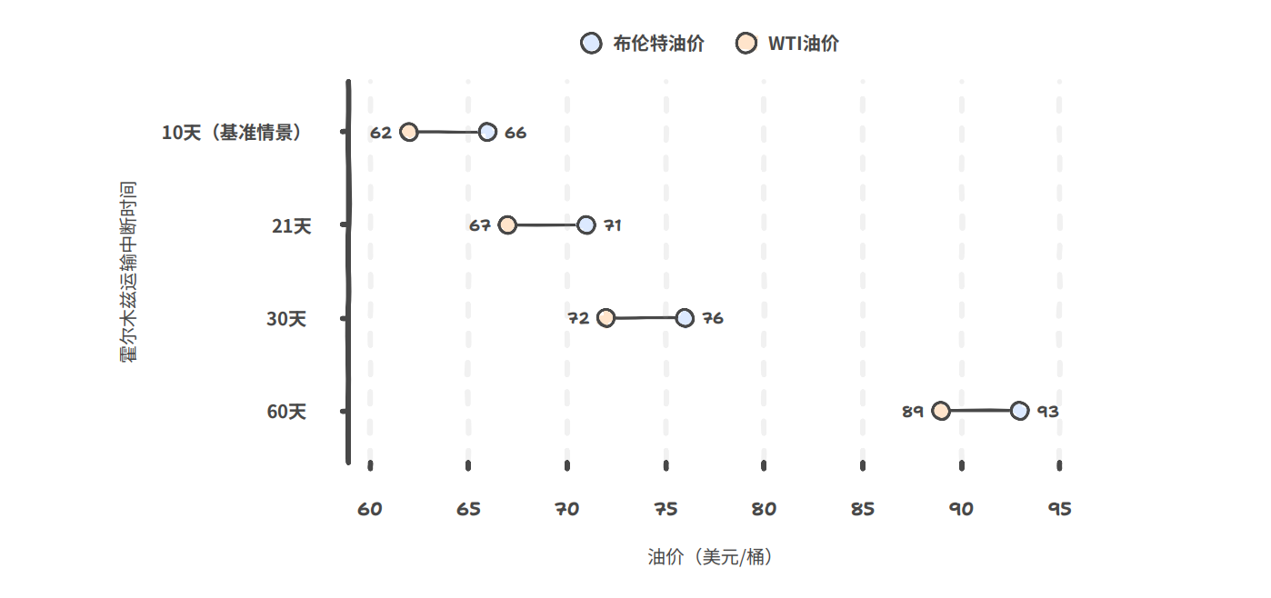由于目前的局势仍瞬息万变,高盛石油研究团队使用了两个简化模型来量化霍尔木兹海峡危机对原油市场的影响。